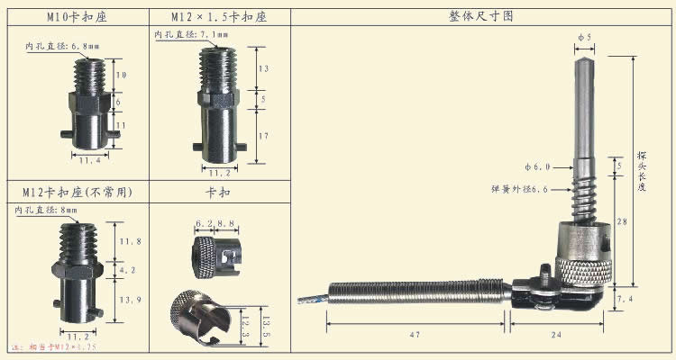 AR17系列热电阻是由含绝缘层和护套层的引线一头焊接铂电阻元件放入不锈钢管内并加上压簧和卡扣当感温探头,一头垂直延长至所需长度作为引线而组成的L型压簧式热电阻。热电阻具有低温精度高,但机械强度低的特点。AR17系列一般用于测量-200~+200℃的金属固体内部温度。 | |||||||||||||||||||||||||||||||||||||||||||||||||||||||||||||||